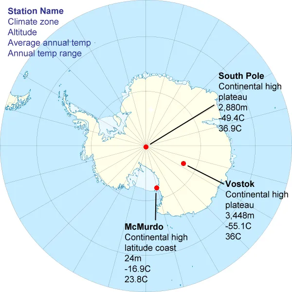 Antarctica Climate Data and Climate Graphs McMurdo, Amundsen-Scott (South Pole) and Vostok Stations