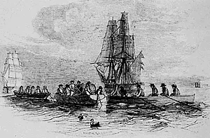 The first iceberg of the voyage was sighted just after Christmas Day in 1840, on New Year's Day 1841 the ships crossed the Antarctic Circle. Warm weather clothing was issued free to all of the crew.