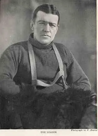 Sir Ernest Shackleton. The canvas straps on his chest are of a sledging harness.