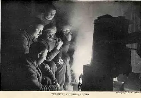 Gathered around a stove on night-watch