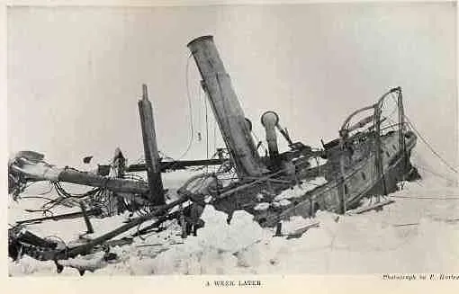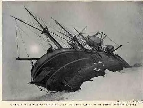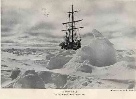 The Endurance well and truly caught fast by now in the days before the time when the sun disappears below the horizon for the winter months.