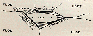 Pressure ridges can throw up some very high ridges making rugged terrain which is difficult to travel over.