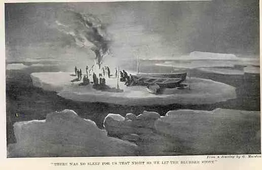 Escaping the heavy pack ice was hazardous at night, so the boats were hauled onto ice floes which was safer, though carried the danger of the floe breaking up in the night.