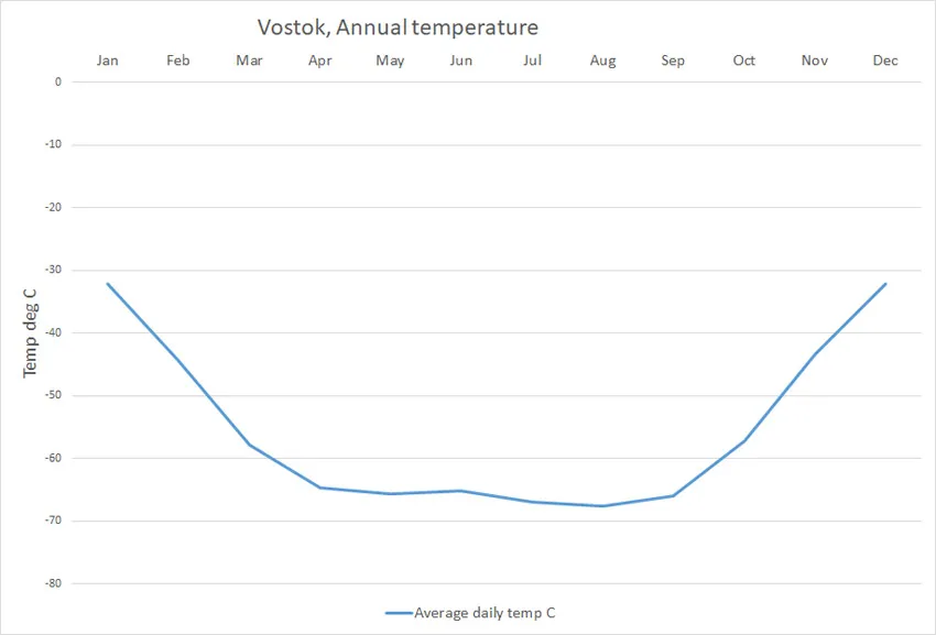Climate data for the Russian Vostok station at the southern geomagnetic pole - Continental High Plateau