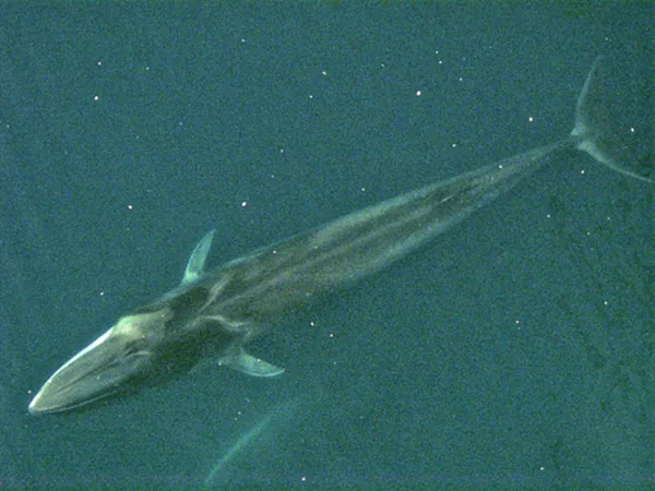 A fin whale photographed from the