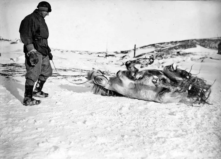 Captain Scott and Dr. Wilson with the Pony 'Nobby' (1912), video 24 secs