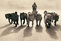 Eventually the car was used to some moderate effect as seen in the pictures, but the wheels meant that it could only run on hard smooth surfaces which are not so common in Antarctica. Usually it was used as far as possible until the wheels became stuck in snow at which point the men would resort to man hauling the sledge while the car driven by Day went back to the base or ship again.