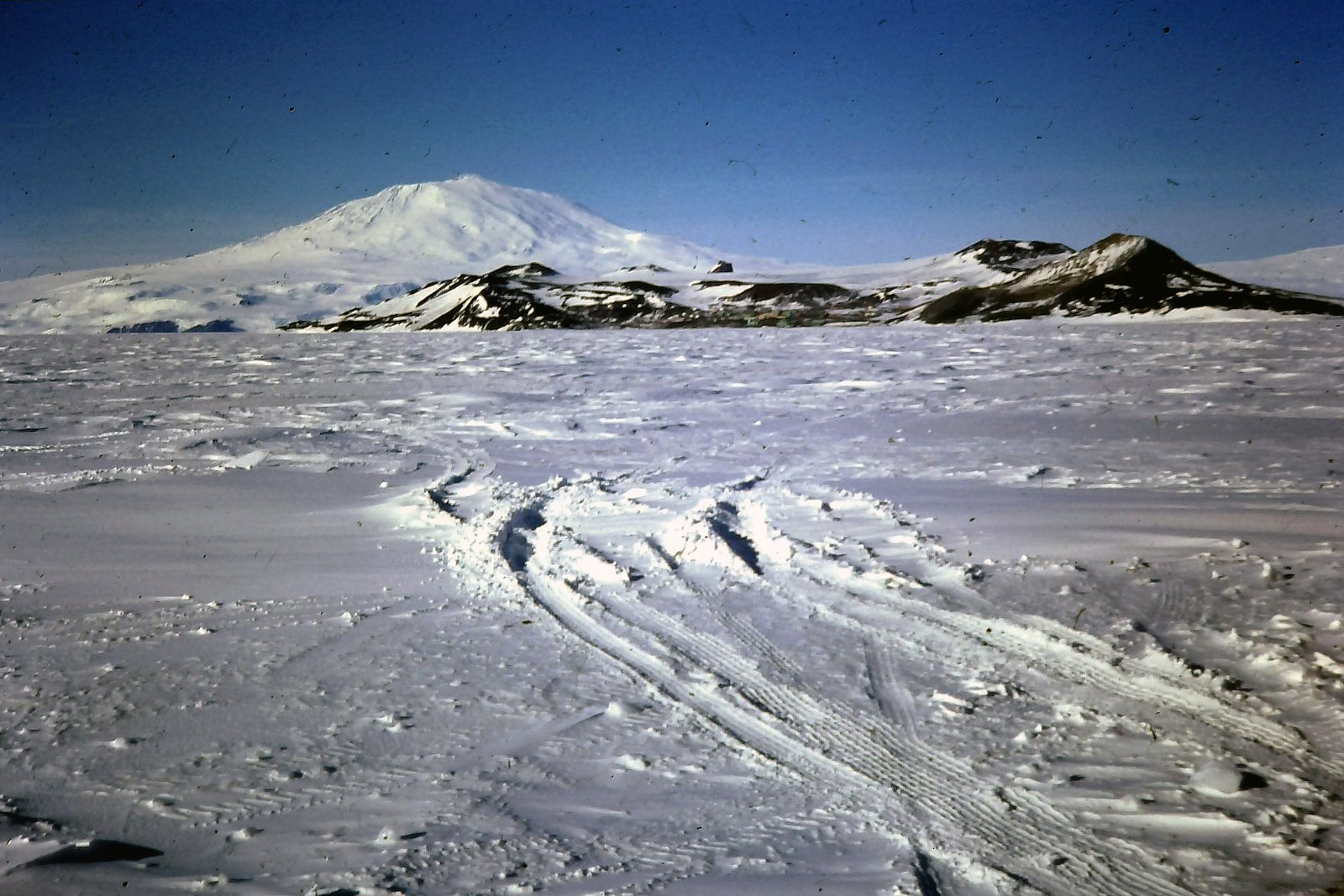 Mount Erebus looms behind McMurdo Station