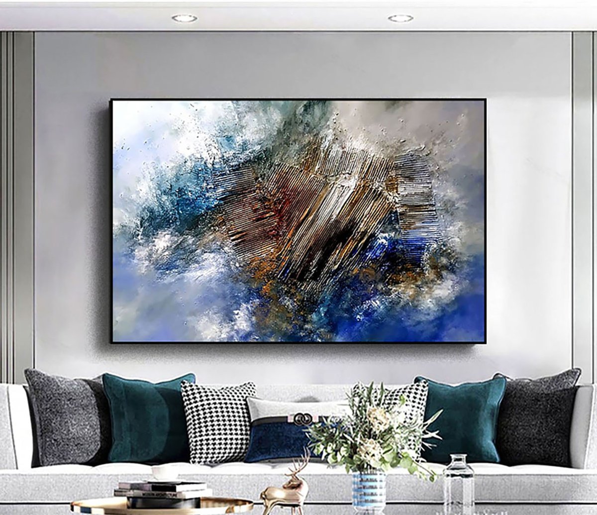 Abstract Acrylic Painting By Alexandra Petropoulou, 35 X 47, Into The Blue, Original Artwork1617.14 USD
