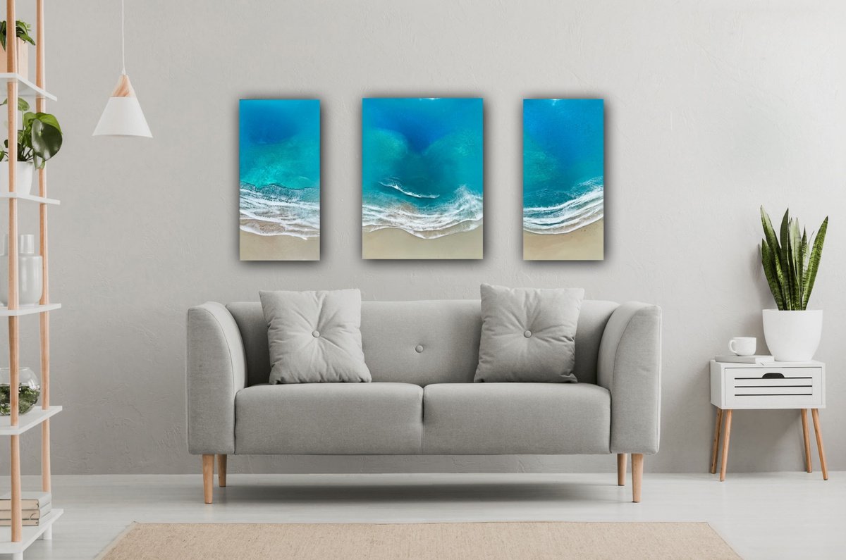 |  Photorealistic Landscape Acrylic Painting By Ana Hefco, 8 X 24, Teal Waves Tropical Beach Painting #53, Original Artwork700 USD