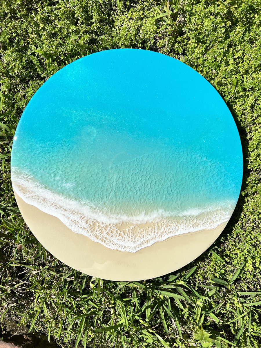 |  Photorealistic Landscape Acrylic Painting By Ana Hefco, 15 X 15, Round Ocean #106, Original Artwork325 USD