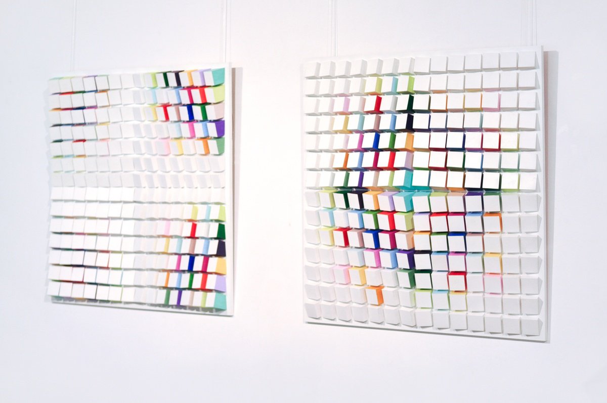 Geometric Abstract Relief By Andrij Savchuk, 28 X 39, Colorful Falling, Original Artwork