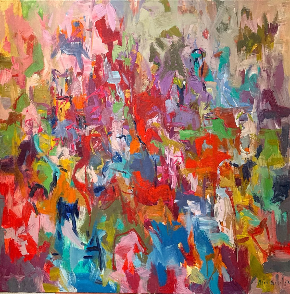 |  Expressive Abstract Acrylic Painting By Nicole Leidenfrost, 39 X 47", Dialogue Of Colors, Original Artwork7392.64 USD