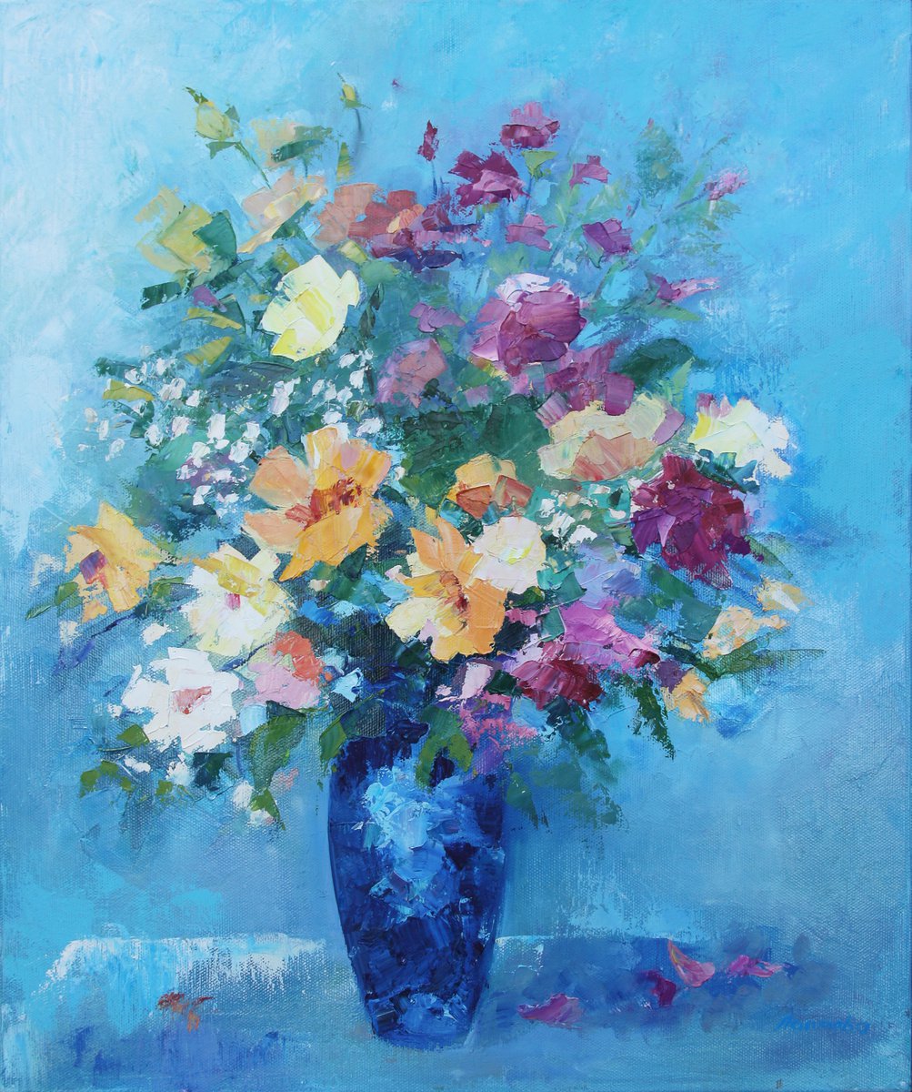 |  Impressionistic Botanical Oil Painting By Olha Laptieva, 20 X 24", Bouquet For A Beloved, Original Artwork460 USD