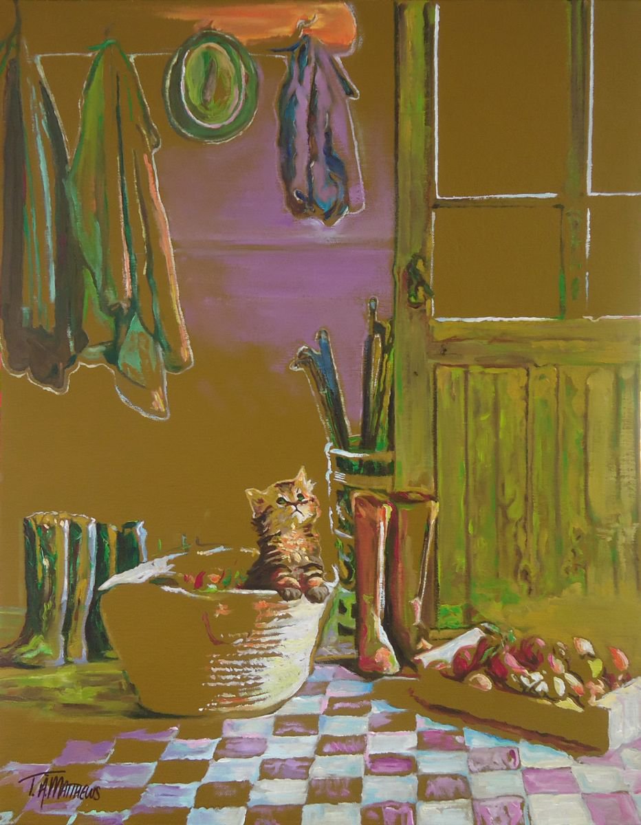 |  Animal Oil Painting By Timothy Adam Matthews, 16 X 22", Where For Art Thou Romeow?, Original Artwork734.75 USD