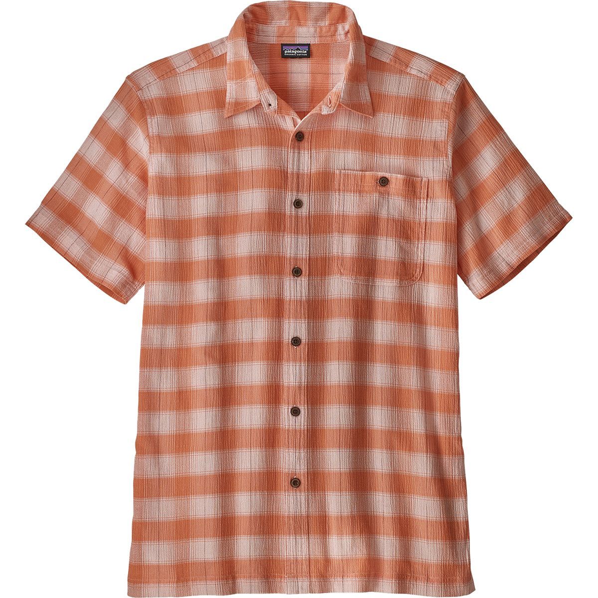 |  Patagonia Men's Short-Sleeved Self-Guided Sun Shirt in Rock Melon, Recycled Polyester/NylonOn sale - now $ 61.99 - was $89
